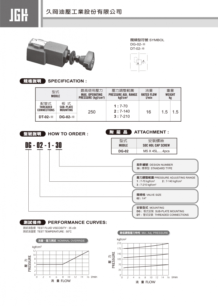 JGH直動式溢流閥常規(guī)型號參考:DG-02-1 , DG-02-2 , DG-02-3 , DT-02-1 , DT-02-2 , DT-02-3