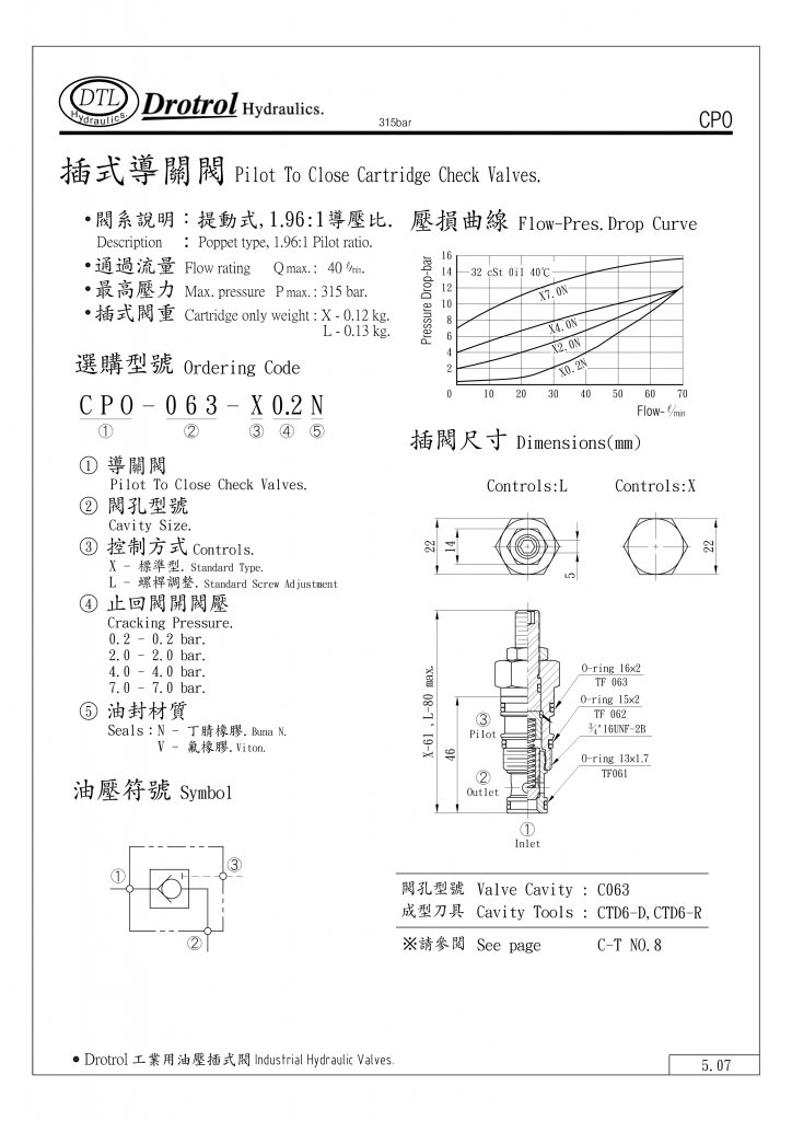 DTL插式導(dǎo)開(kāi)閥部分常規(guī)型號(hào)參考:CPO-093-L0.2N , CPO-093-L0.2V , CPO-093-L2.0N , CPO-093-L2.0V , CPO-093-L4.0N , CPO-093-L4.0V , CPO-093-L7.0N , CPO-093-L7.0V , CPO-093-X0.2N , CPO-093-X0.2V , CPO-093-X2.0N , CPO-093-X2.0V , CPO-093-X4.0N , CPO-093-X4.0V , CPO-093-X7.0N , CPO-093-X7.0V ,