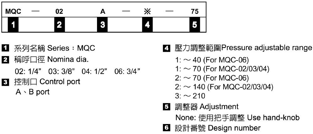| 型式號(hào)碼 | 最大壓力 (KG/CM2) | 最大流量 (L/MIN) |