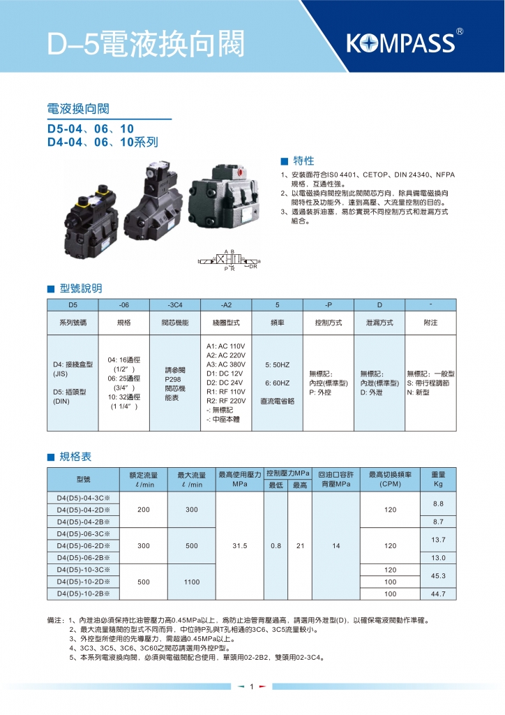 KOMPASS康百世電液換向閥 D4,D5-04,06,10系列電液換向閥