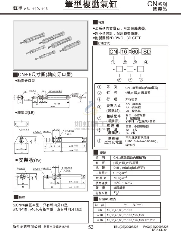 CN筆型氣缸 ?10~16 日本大廠相容型