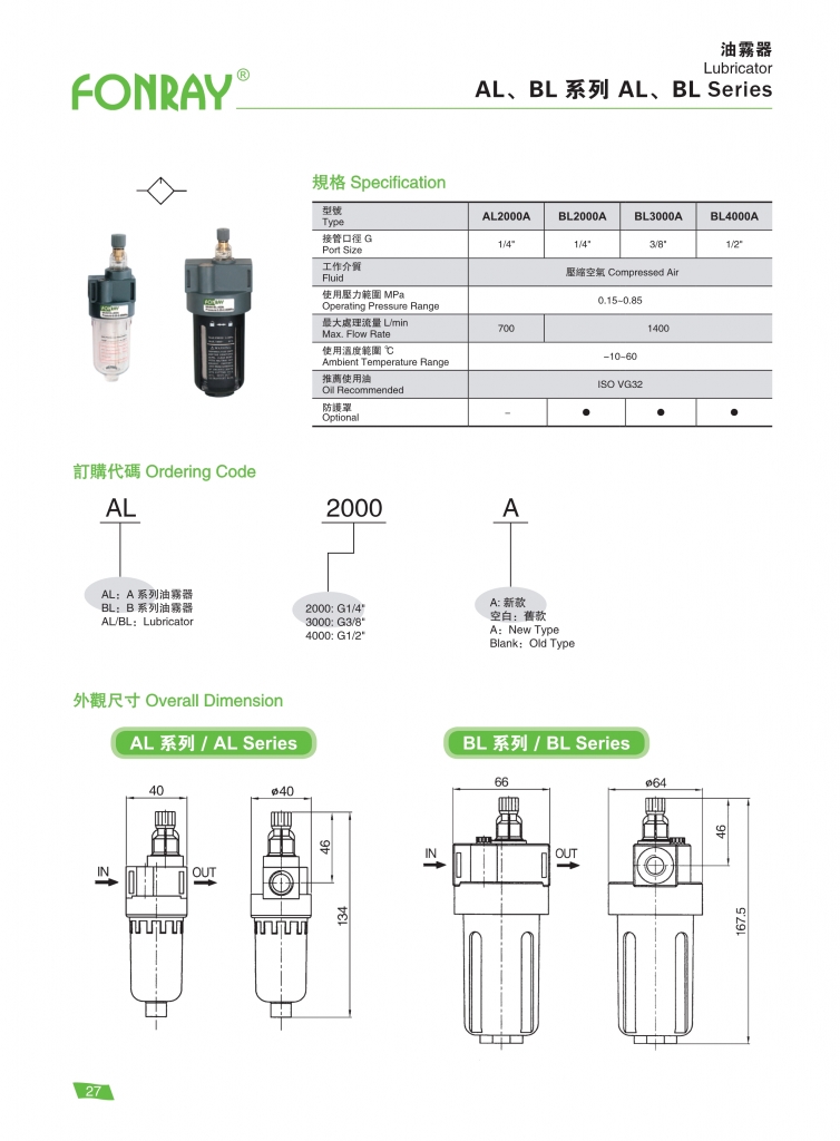 FONRAY芳銳氣源處理元件 油霧器 / 油霧過(guò)濾器