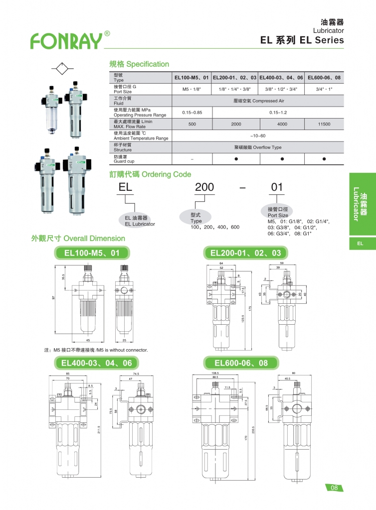 EL100-M5、01 M5、1/8″ 500 0.15 ~ 0.85