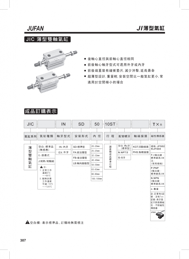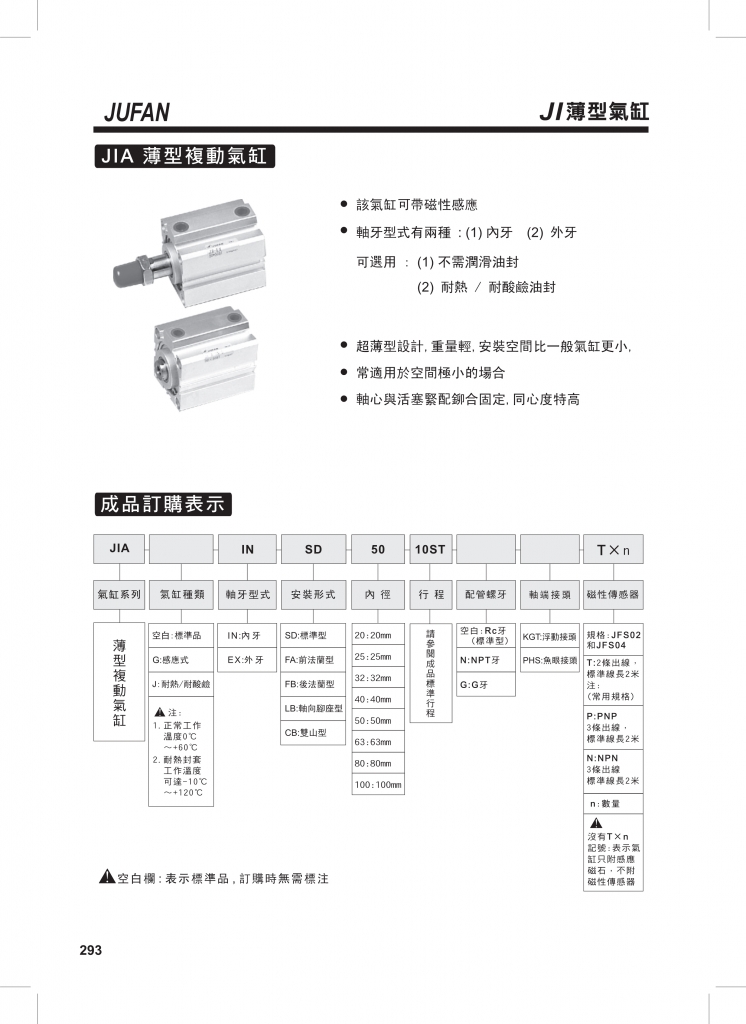 JIA薄型復(fù)動(dòng)氣缸JIB薄型雙軸氣缸JIC薄型雙軸氣缸