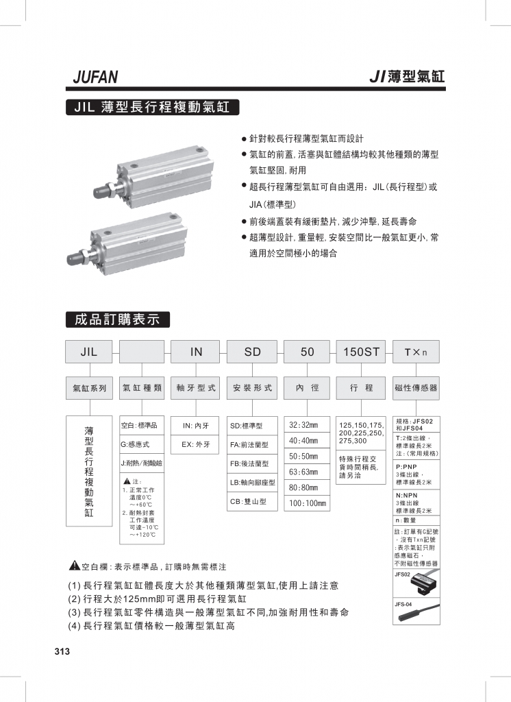 JUFAN君帆氣缸 JI系列薄型氣缸