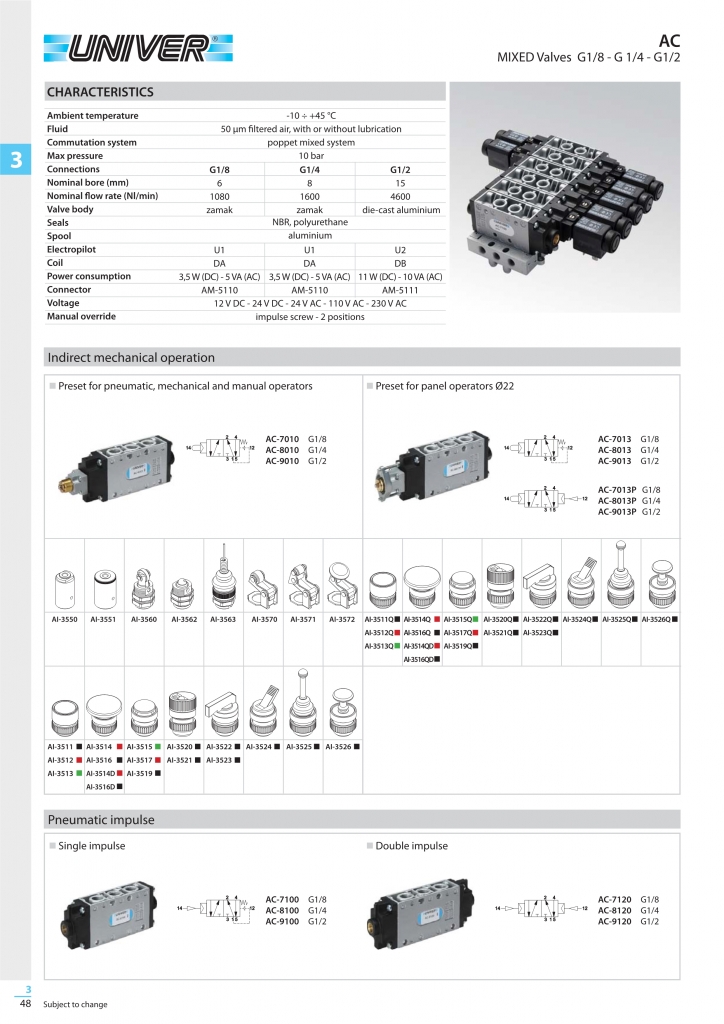 UNIVER提升閥常規(guī)型號(hào):AC-7009,AC-7010,AC-7010P,AC-7011,AC-7013,AC-7013P,AC-7019,AC-7020,AC-7100,AC-7120,AC-7121,AC-7500,AC-7500R,AC-7505,AC-7505R,AC-7509,AC-7520,AC-7520R,AC-7521,AC-7522,AC-7522D,AC-7525,AC-7525R,AC-7526,AC-7527,AC-7529,AC-7530,AC-7531,AC-7740,AC-7745,AC-7760,AC-7761,AC-7762,AC-7762D,AC-7765,AC-7766,AC-7769,AC-7900,AC-7905,AC-7980,AC-7985,AC-8010,AC-8013,AC-8019,AC-8020,AC-8100,AC-8120,AC-8121,AC-8500,AC-8505,AC-8509,AC-8520,AC-8521,AC-8522,AC-8523,AC-8525,AC-8526,AC-8527,AC-8529,AC-8530,AC-8531,AC-8740,AC-8743,AC-8745,AC-8760,AC-8761,AC-8762,AC-8765,AC-8900,AC-89080,AC-9010,AC-9013,AC-9100,AC-9120,AC-9121,AC-9500,AC-9520,AC-9521,AC-9522,AC-9980,AC-9985