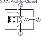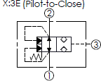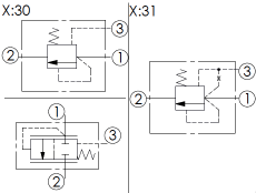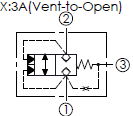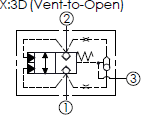 透氣開閥 帶8A2/08W2控制插孔 彈簧偏位關(guān) 油口1或2任一 較高壓口為透氣壓力源 |